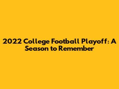 The 2022 College Football Playoff was a season to remember, filled with drama, surprises, and incredible moments. From the nail-biting semi-finals to the dominant performance in the National Championship game, this playoff delivered on all fronts. The teams showcased their talent, resilience, and sportsmanship. The season was a testament to the dedication and hard work of all the players, coaches, and fans involved. The 2022 CFP will be remembered as a season of legends. We witnessed amazing performances, stunning upsets, and unforgettable moments. As we look forward to future seasons, let's remember the excitement and passion that made the 2022 playoffs so special. Thanks for joining us on this journey down memory lane. See you next season!