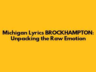 Hey guys! Let's dive deep into one of BROCKHAMPTON's most poignant tracks, "Michigan." This song, raw and emotionally charged, is a standout in their discography. If you've ever listened to it and felt that tug at your heartstrings, you're not alone. But what makes "Michigan" so special? It's the lyrics, man. They're like a window into the soul, offering a glimpse into the struggles, vulnerabilities, and complexities of the human experience. We're going to dissect those lyrics, explore the underlying themes, and try to get a better grasp of what BROCKHAMPTON was trying to convey. So, buckle up, grab your headphones, and let's embark on this lyrical journey together!