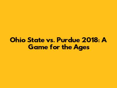 Ohio State Vs. Purdue 2018: A Game For The Ages