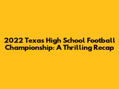 Hey guys! Let's dive into the thrilling world of Texas high school football and relive the excitement of the 2022 State Championship. If there's one thing Texans are passionate about, it's football, and the high school championships are the pinnacle of the sport for these young athletes. From nail-biting finishes to outstanding individual performances, the 2022 season delivered some unforgettable moments. So, grab your favorite snack, settle in, and let's break down all the action from the 2022 Texas State Championship football games. We'll cover the major matchups, the key players, and the unforgettable moments that defined the season. Think of this as your ultimate guide to reliving the glory of the past year in Texas high school football. The energy, the passion, the roar of the crowds – it's all part of what makes Texas football so special. Every year, teams battle their way through grueling regular seasons and intense playoff brackets, all with the ultimate goal of reaching the state championship game. It's a journey that tests their skills, their teamwork, and their determination. And for the teams that make it to the final stage, the atmosphere is electric. The Texas high school football championships are more than just games; they're community events, showcasing the pride and passion of towns and cities across the state. From the smallest rural schools to the largest urban powerhouses, every team dreams of hoisting that coveted trophy. The dedication and commitment of these athletes is truly inspiring. They spend countless hours practicing, studying film, and pushing themselves to their limits. For many, it's a stepping stone to college football and beyond. But even for those who don't pursue a career in the sport, the lessons they learn on the field – teamwork, discipline, and perseverance – will stay with them for a lifetime. So, let's celebrate the hard work, the dedication, and the incredible achievements of the teams and players who made the 2022 Texas high school football season so memorable.